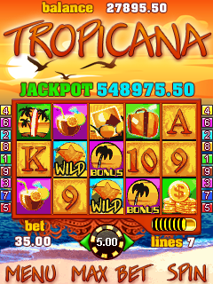 Tropicana: A Luxury multi activity 3-reel, 9 -line Tropicana themed java game with exceptionally high quality smooth and unmatched graphics, featuring bonus rounds and progressive jackpot. (Up to x5000 your stake)